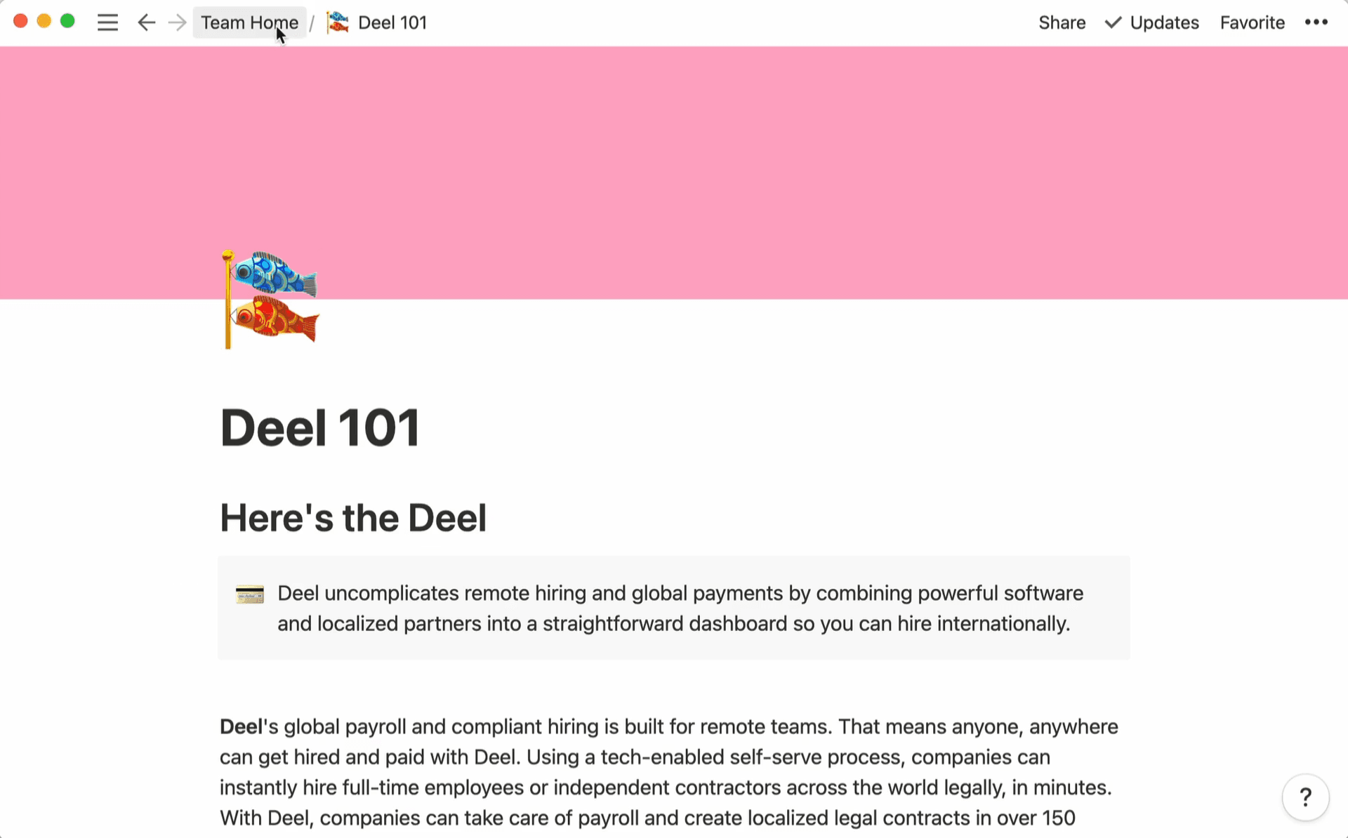 Anything that exists in anyone’s brain is also recorded in Notion. Someone could join Deel and onboard themselves without ever speaking to anybody.